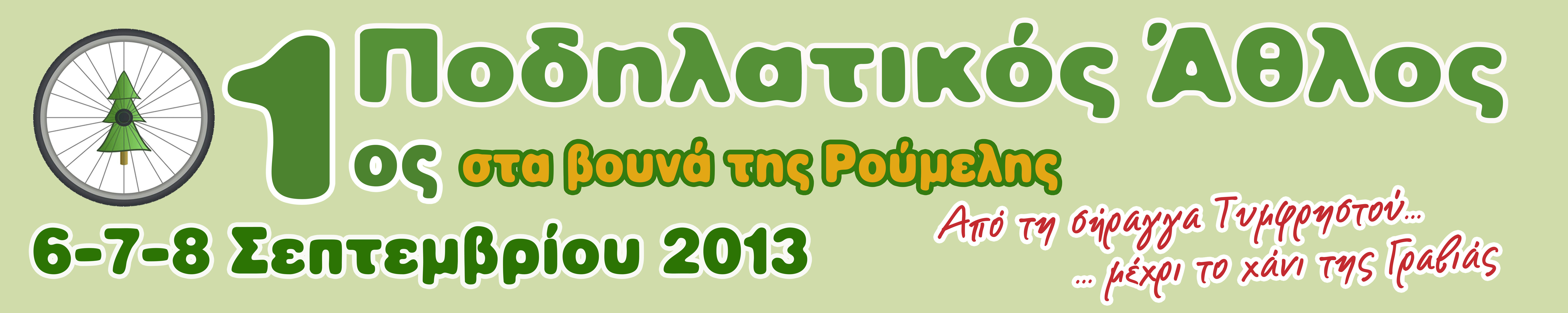 Συνάντηση: 6/9/2013 στις 11:00 στη Λαμία [Μπροστά από το κτίριο της Αστυνομικής Δ/νσης Φθιώτιδας] – μεταφορά των ποδηλατών με πούλμαν και των ποδηλάτων με φορτηγό μέχρι την αφετηρία, τη Σήραγγα Τυμφρηστού